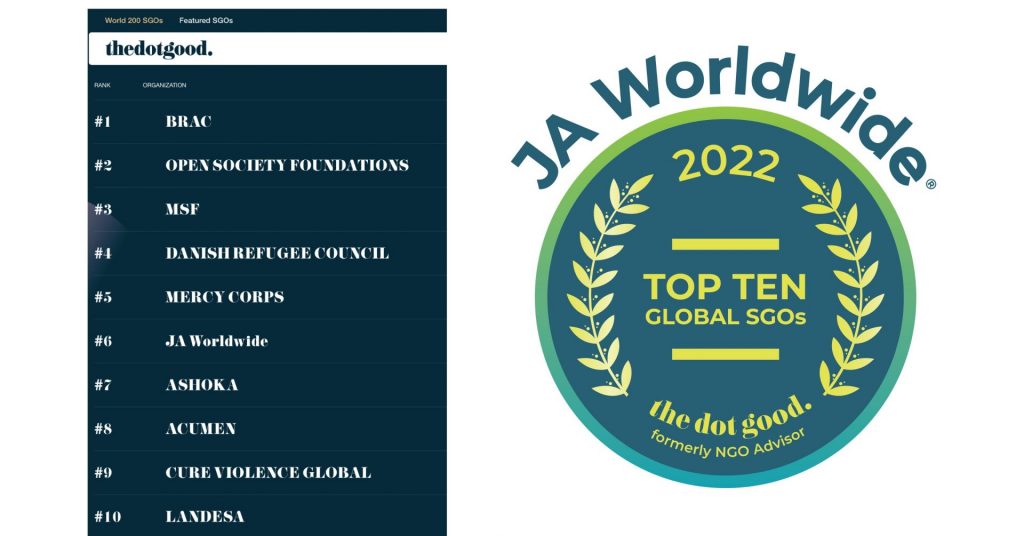 Geneva-based NGO Advisor—which recently rebranded as thedotgood—has just announced that JA Worldwide remains among the ten most impactful social-good organization in the world.